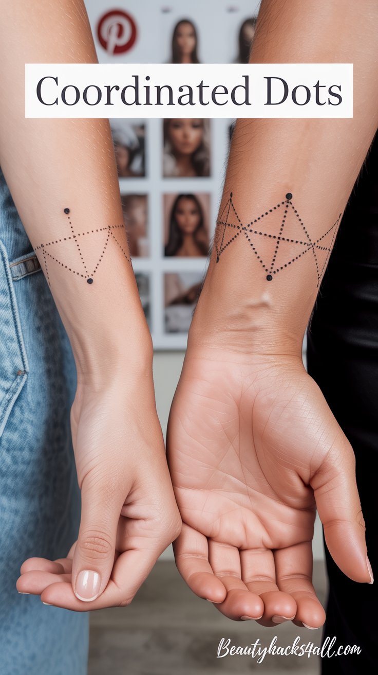 Coordinated Wrist Dots: Not identical, but complementary. One gets three dots in a triangle formation; the other gets three dots in a line. Same language, different dialect.