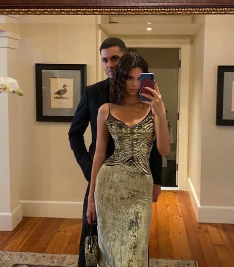 - Kendall Jenner looking lovingly elegant to Justin Bieber and Hailey Baldwin’s wedding. You can also rock this dress at a beach wedding, as its colors are calm and settle. Sleeves are perfect for the beach.