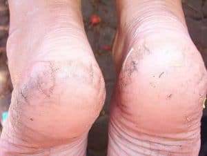- dehydration, lack of moisture in your feet result is chapped and cracked heels.