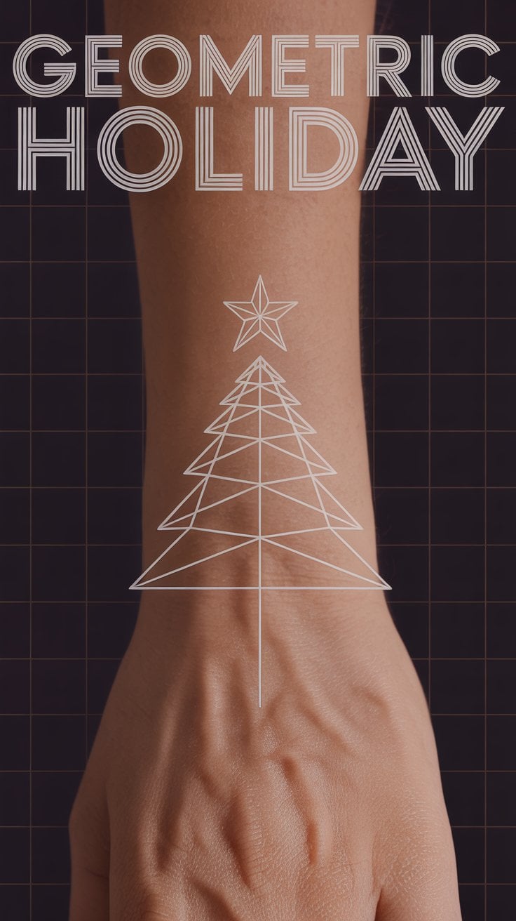 Triangles stack tree-forms wrists geometric—clean lines, no fill, 2-inch modern. Star polyhedrons shoulders are sharp. Cubist ornaments ribs, play angles. Abstract nods tradition crisp. Architects love; minimalists thrive. Zero pain bony skips. Math meets merry.