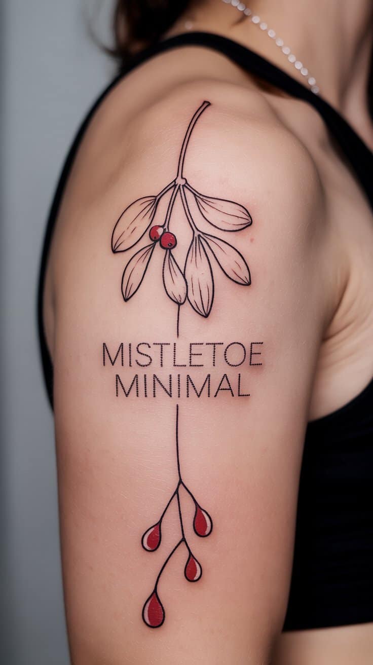 Twin berries drop shoulder blades—1-inch mistletoe kiss-ready, fine-line stems trail. Ankle pairs solo. Symbol luck-love simple. Party prop or private wink. Heals fastest. Green-black mixes tone-flex. Kiss the season.