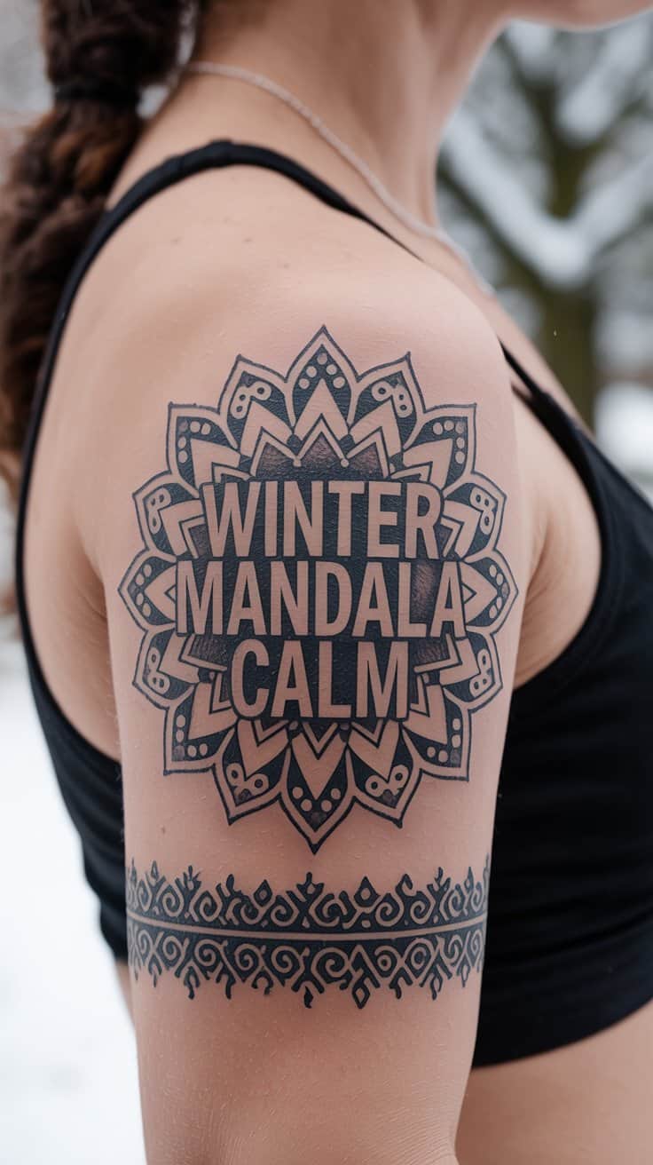 Snow mandalas bloom on symmetrical shoulders, symmetrical—4-inch weaves of flakes and swirls, zen amid rush. Filigree borders wrist vines, intricate, small-scale, calm. Patterns soothe like fresh powder. Artist pick matters for clean layers; hour tops. Hypnotic visuals pin like crazy. Holiday harmony bottled.