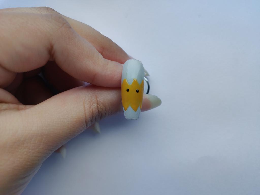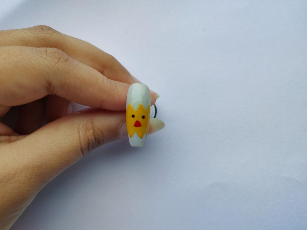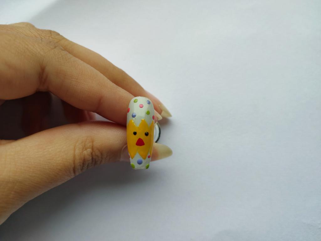 Your chicken in the egg nail art is complete now. See how cute it is. Do try these designs and let me know how it turns out. Drop your thoughts below in the comment box.