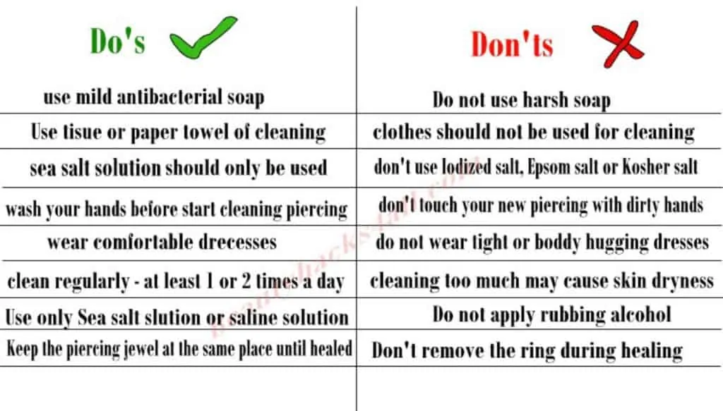 We’ll discuss the cleaning process of navel piercing in details. Apart from that the most important section of this post is gonna be Do’s and Don’ts of belly button piercing.