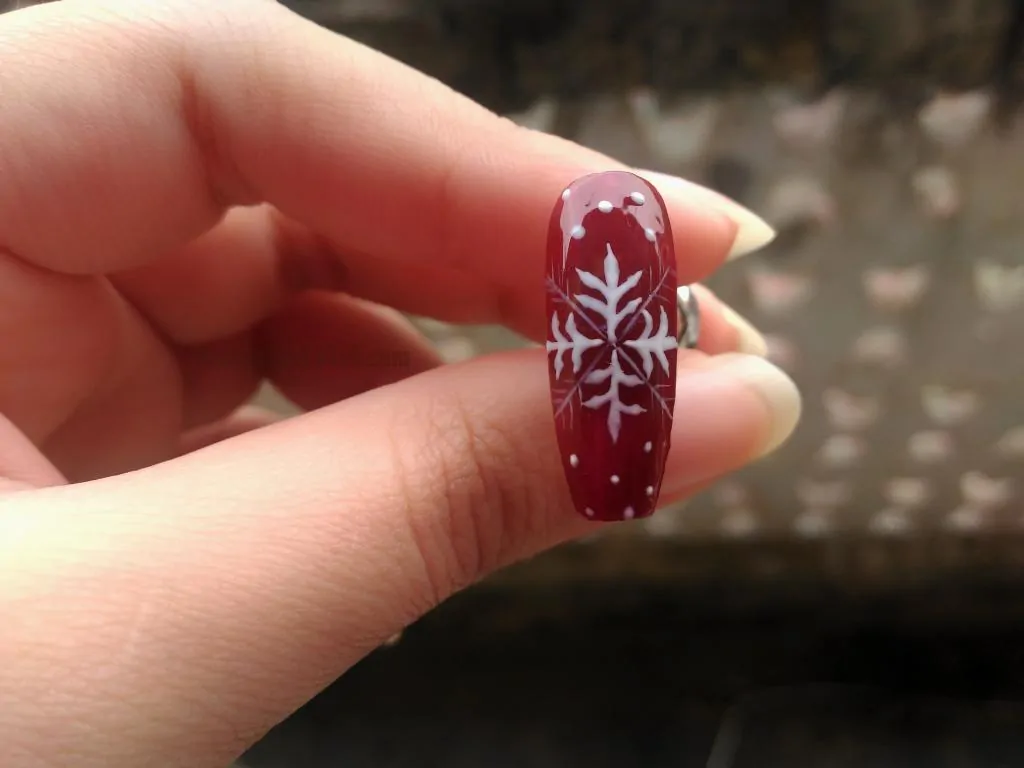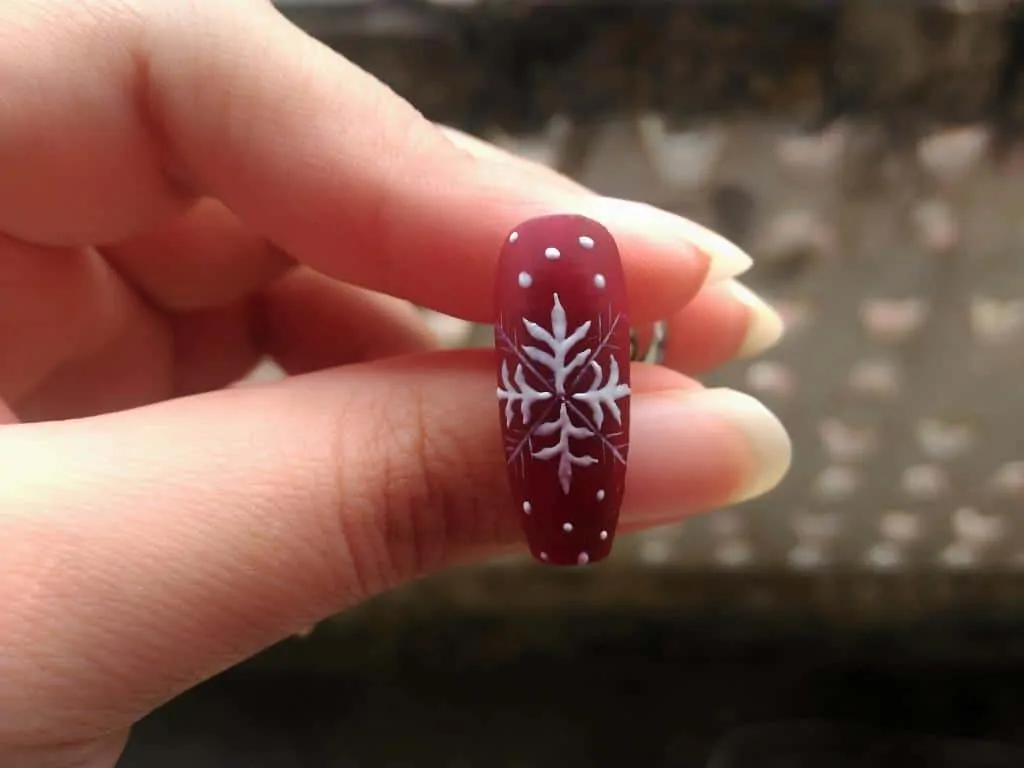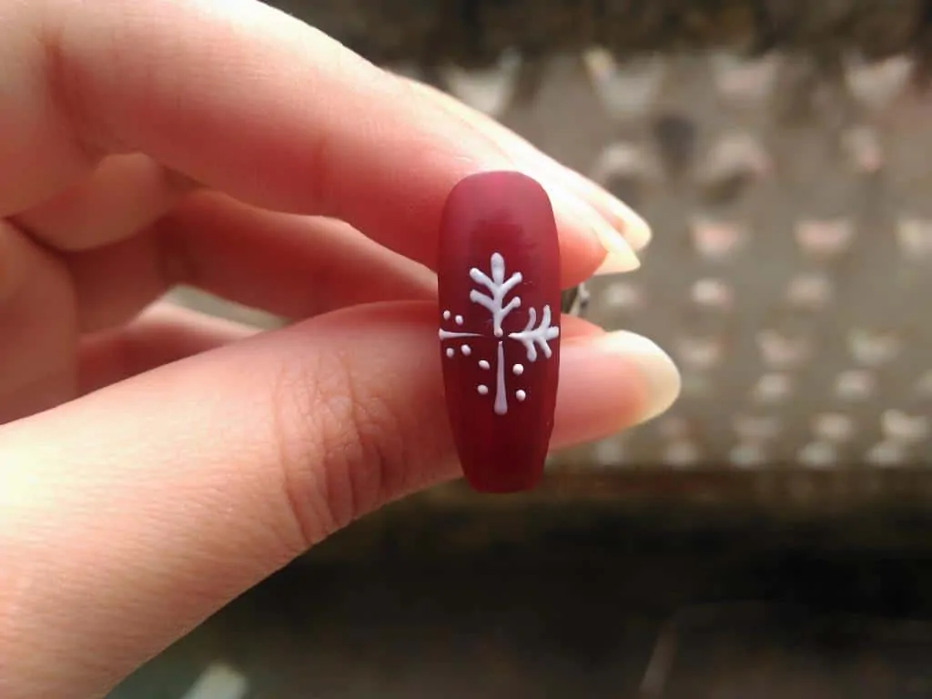 You can make the snowflake design simply by making dots as shown in the given images. Start with basecoat as I always suggest, and end with a topcoat.