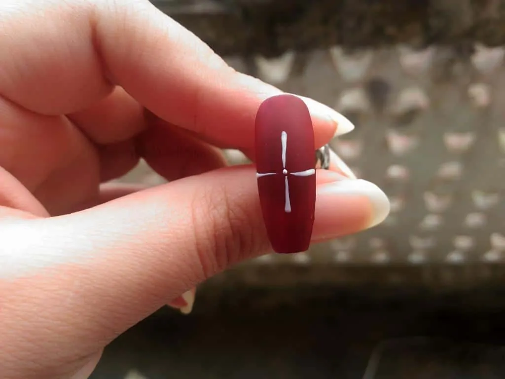 Now give it some time to get dry. After letting your base coat fully dry, apply the red color polish as a base for the exact same design. Here I have used a matte red colored polish from meow cosmetics.