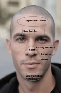 Acne on the chin indicated stomach, small intestine or hormonal disbalance.
