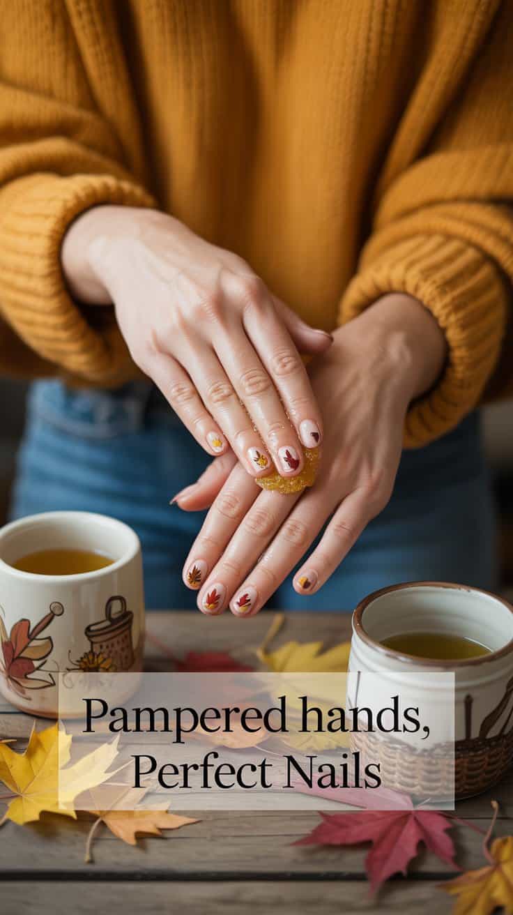 Tip: Choose warm, fall nail polish colors like cranberry, burnt orange, or gold for a festive finish.