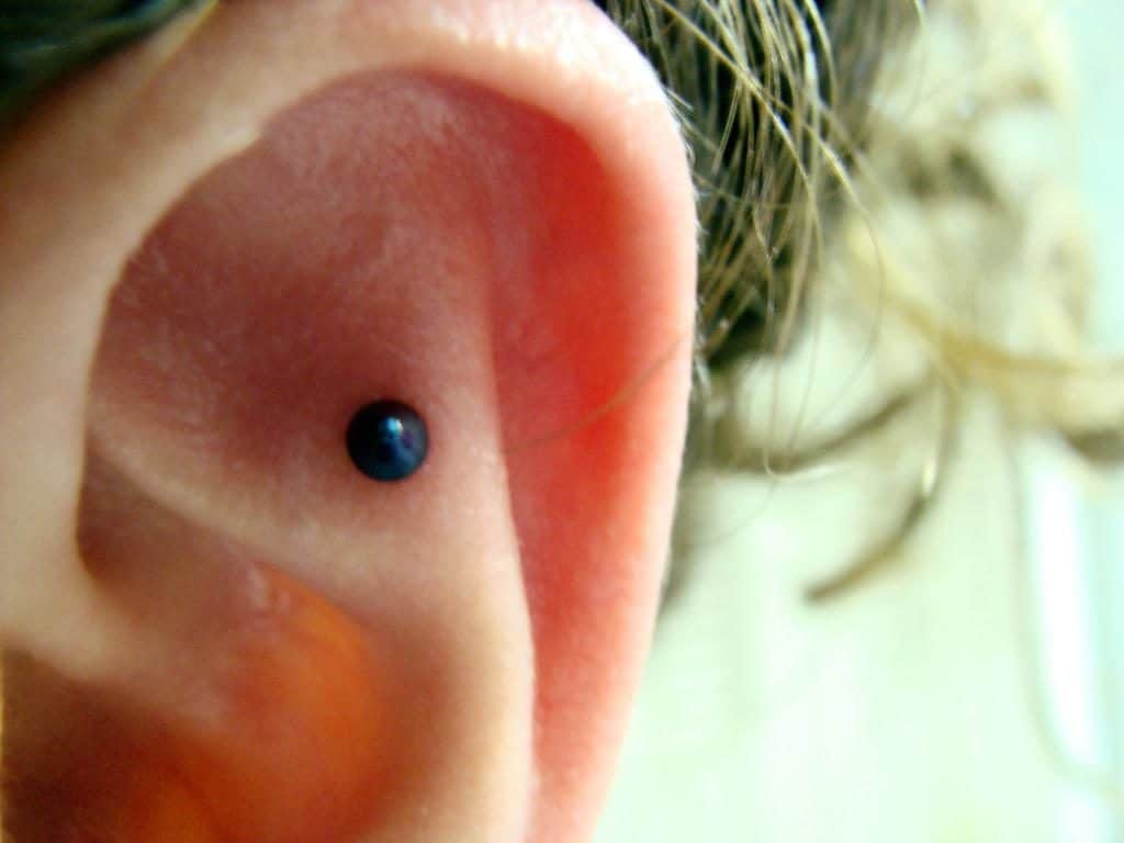 A little projection of cartilage of ear root can also be pierced. The section is called tragus and it looks really cute on guys.